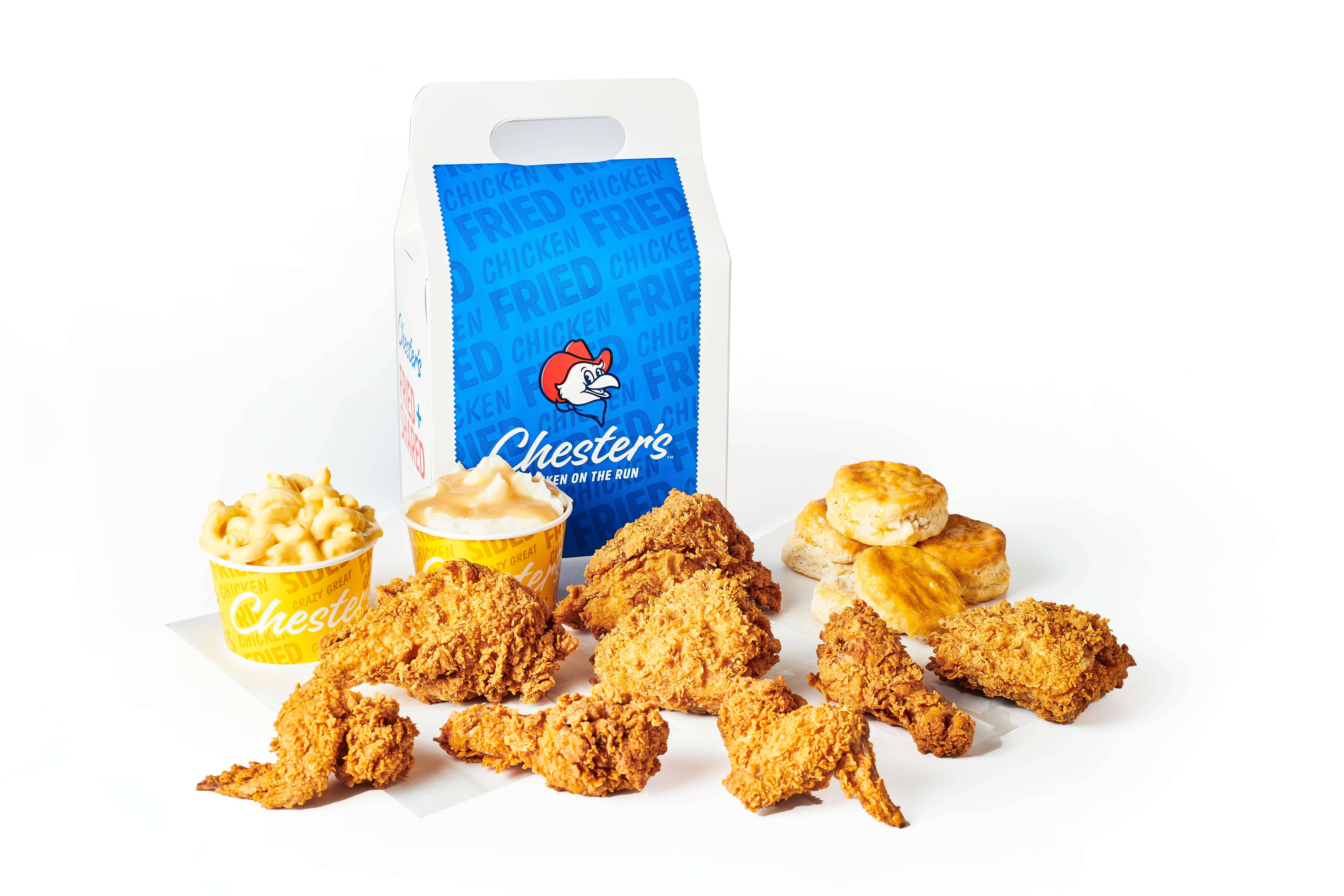 Chester’s menu features our double hand-breaded jumbo chicken tenders, which are almost 2X the size of most QSR tenders. In other words, more cluck for your buck! We also serve classic bone-in chicken, a mouthwatering line-up of fried chicken sandwiches, poppable chicken bites and livers and gizzards, award-winning sides, and crispy homestyle fried pies.